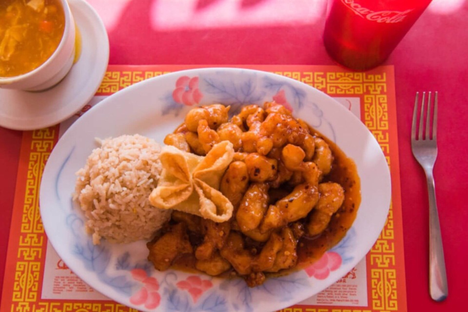 The most popular dish served at China Cafe is the Orange Chicken (pictured here) - a slightly spicy sweet sauce over breaded chicken. Most entrees come with your choice of soup (egg drop or hot & sour), egg roll or crab ragoon (my personal favorite), and fried or steamed rice. They serve up large portions and each order is cooked fresh.